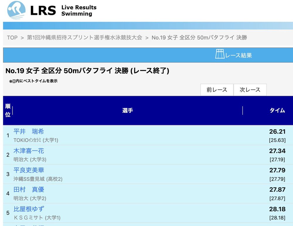 競泳 平井瑞希選手「第1回沖縄県招待スプリント選手権水泳競技大会 」優勝 NEWS 株式会社ユークリッド・パートナーズ 2025/10/08 23:05 フォロー 「第1回沖縄県招待スプリント選手権水泳競技大会 」当社が後援会運営コンサルを担当してます競泳 平井瑞希選手が 女子50mバタフライ 優勝しました! URLをコピーする 報告する